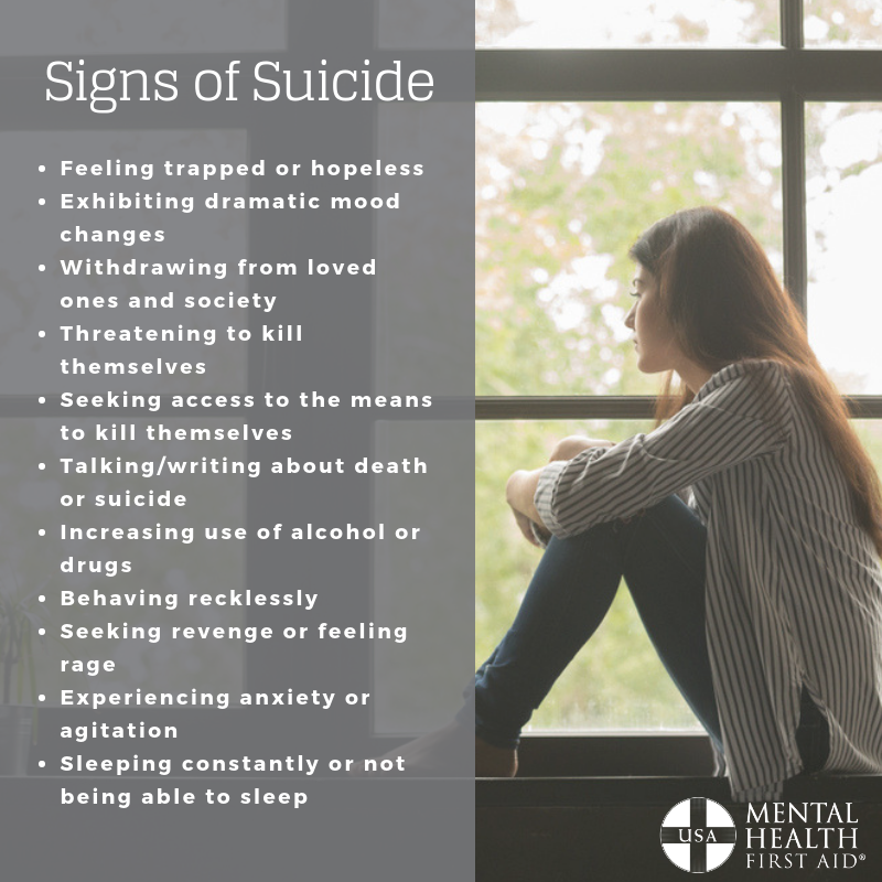 If you suspect someone you know is considering suicide, Mental Health First Aid teaches you to follow the ALGEE action steps.